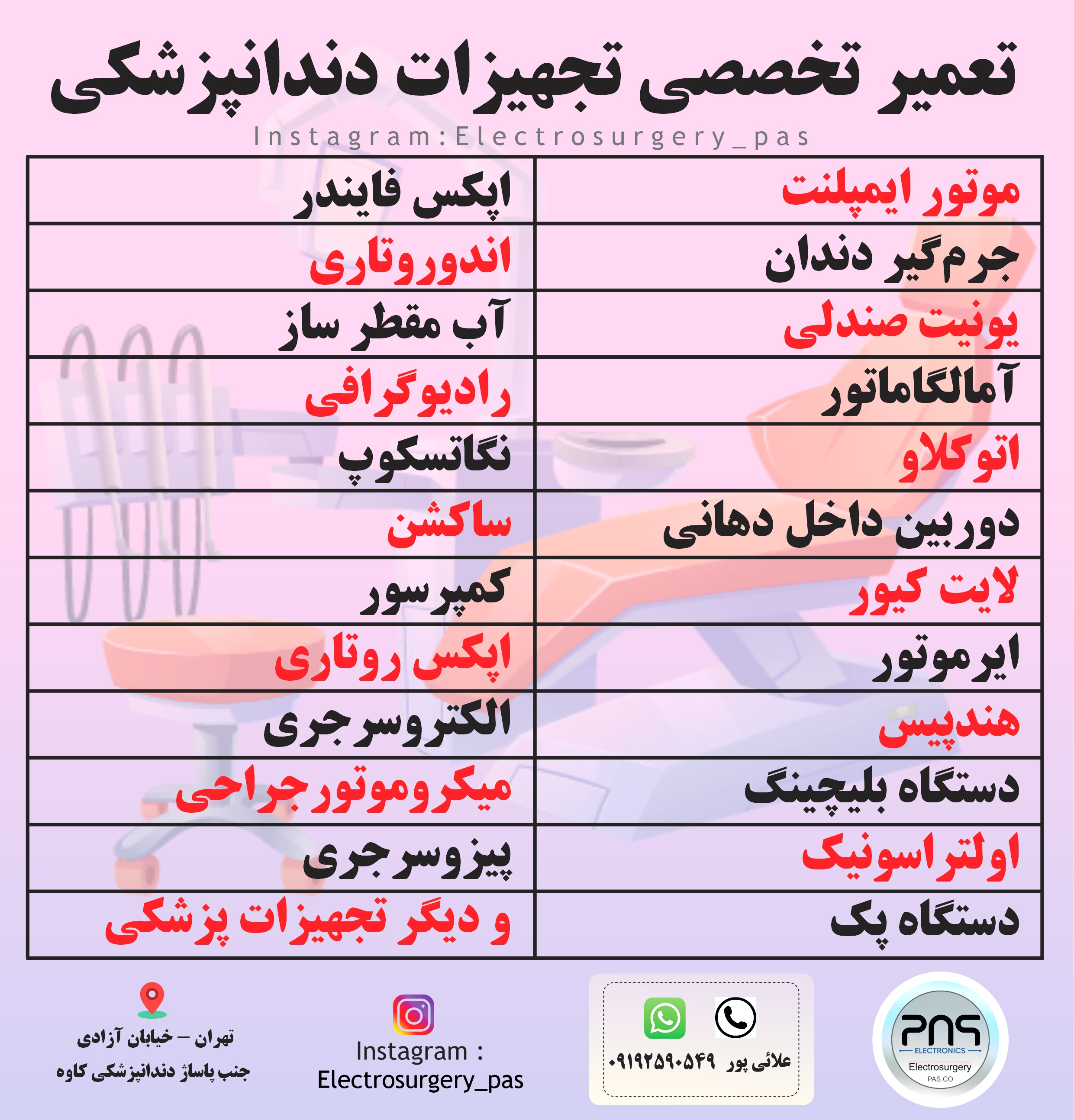 💠 تعمیر تخصصی انواع دستگاه های دندانپزشکی شامل :